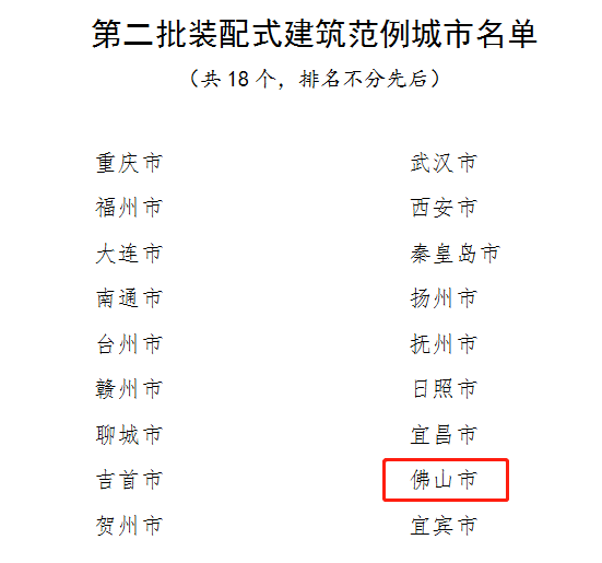 ■佛山市及6家广东企业入选住建部第二批装配式建筑范例城市和产业基地