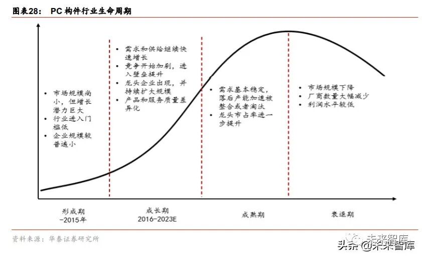 部分构件厂经营困难,盈利水平较低,目前 PC 构件行业产能利用率不足和部分工厂运营 成本高企仍是制约行业整体盈利能力提升的重要因素。我们认为主要原因有以下三点:1) 部分 PC 构件生产商在投资建厂时,盲目选址,未考虑当地实际需求量和运输半径的限制, 导致产线建成后业务需求量不足,产能利用率无法达到盈利水平;2)一些 PC 构件生产 商在建厂初期投入过大,包括盲目引进投资强度较高的全自动生产线、征用过多建设用地 等,导致后续折旧摊销费用较高,构件生产成本居高不下;3)尽管许多构件生产企业的 厂房和设备等硬件设施比较到位,但是没有成熟的技术和管理体系,同时专业人员短缺, 造成生产效率低下、质量水平较低的问题比较突出。从产业生命周期来看,目前 PC 行业尚处于需求和供给同时快速增长的高速发展期,后续进入成熟期需要经历落后产能不断淘汰的行业洗牌阶段。根据产业生命周期理论,每个产 业都要经历的一个由成长到衰退的演变过程,一般分为初创阶段、成长阶段、成熟阶段和 衰退阶段四个阶段。由于当前 PC 行业还处于供给和需求均在快速增加的状态之下,行业 正处于发展成长阶段,在向成熟期转变的过程中将接受行业洗牌的过程。而对于行业成长 期的公司来说,行业内的竞争也开始加剧,龙头和尾部企业的差距进一步拉大,根据我们 近期的调研,江苏、上海等地区在 17-18 年新进厂家大幅增加之后,19 年构件厂数量的 增幅开始下降,而一些经营困难的构件厂已开始被整合,我们认为成长期行业竞争加剧的 过程中,经营水平低、盈利状况较差的中小构件厂等落后产能或逐渐退出市场竞争。