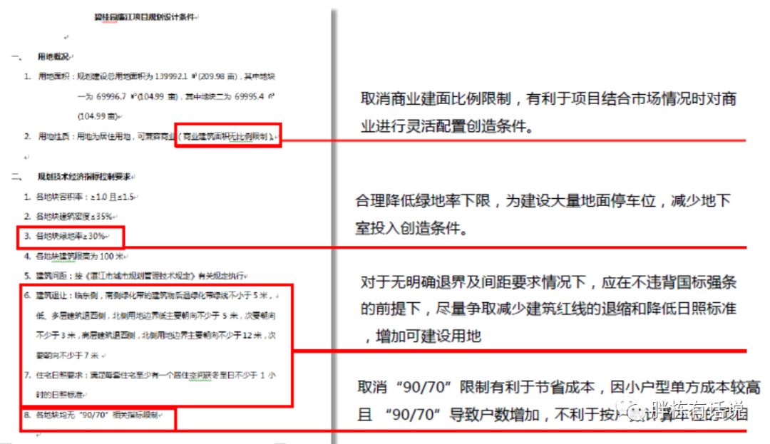 在规划前期阶段,投资拓展部应向当地政府或有关部门争取最小的车位比不最大的地面停车率,以减少地下车库面积。对一些地价低,高层市场一般,车位售价低且去化难的项目(如雷州),可考虑实行100%地面停车,不设地下车库,以最大限度的省去地下车库建设成本。