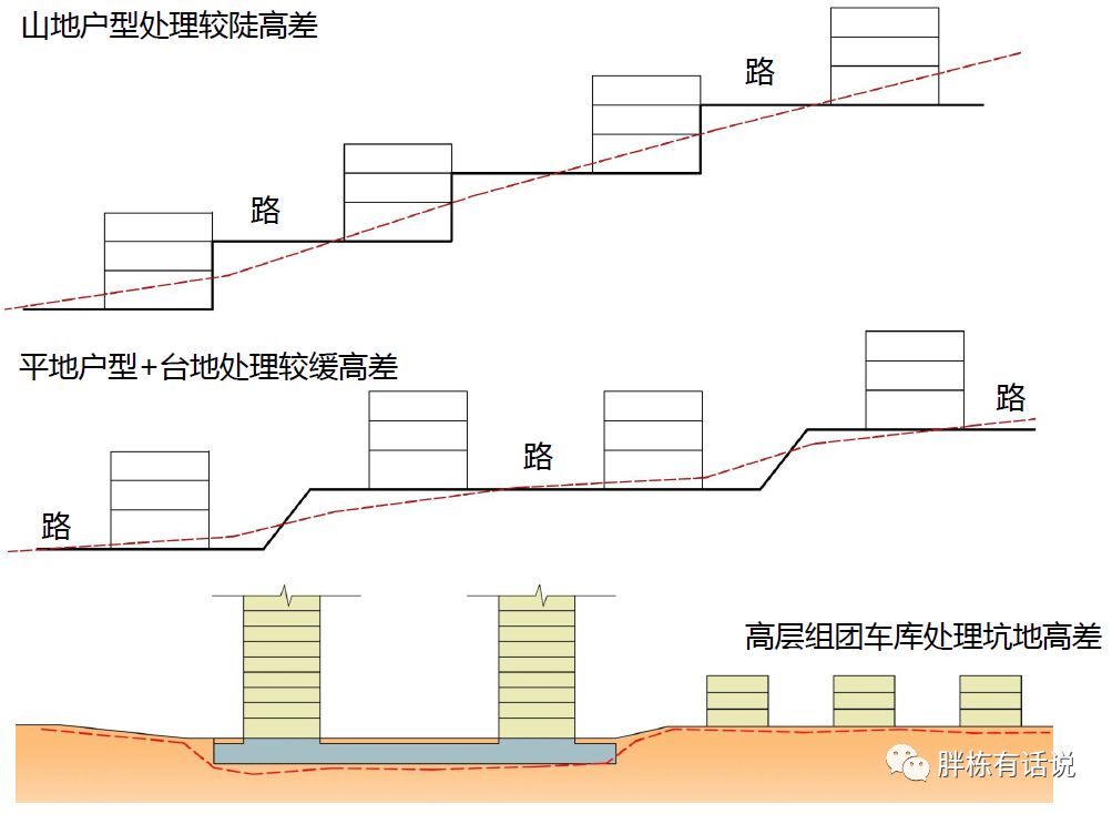 开平十一期原方案充分尊重地形,以土方成本最少为优先原则规划,则使别墅间高差达4~5m,影响去化。调整后方案,以“快去化”为导则,尽量将两排别墅间的高差控制在1.5m,土方成本增加,但有利于项目更快更好得去化。